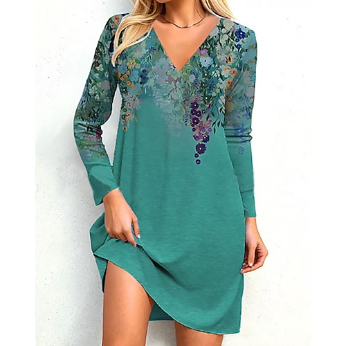 Abito Mini Donna Manica Lunga Girocollo Abito Casuale Abito T-Shirt Abito Tee Abito A-Line Abito Casuale Fit Regolare Grafico Floreale Scollatura Nera Blu Viola Verde Primavera Autunno Inverno