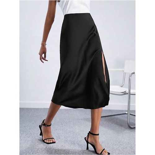 Per donna Gonna Linea A Elegante Moda Midi Vita Alta Gonne Semplice Tasca Micro-elastico Cocktail party Data Blu Nero Verde Estate Raso