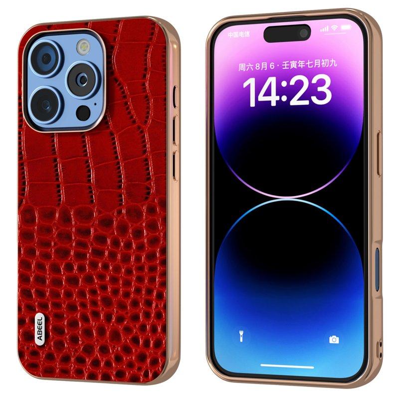 ABEEL Mobilskal till iPhone 16 Pro Max Äkta Läder Krokodil Röd