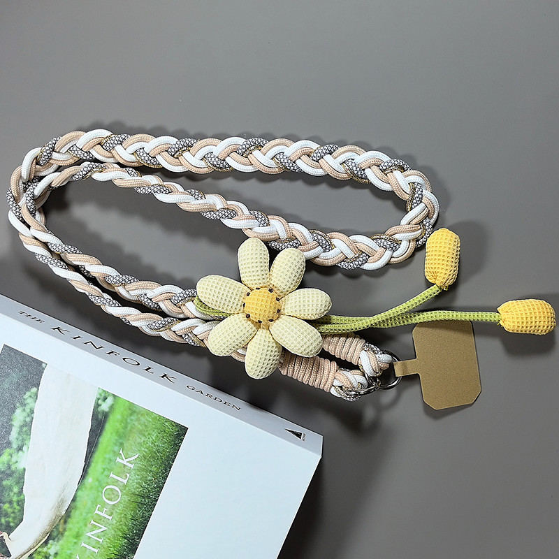 Cute Braided Phone Lanyard Strap with Plush Flower Charm – Soft Neck Rope for Phone Case