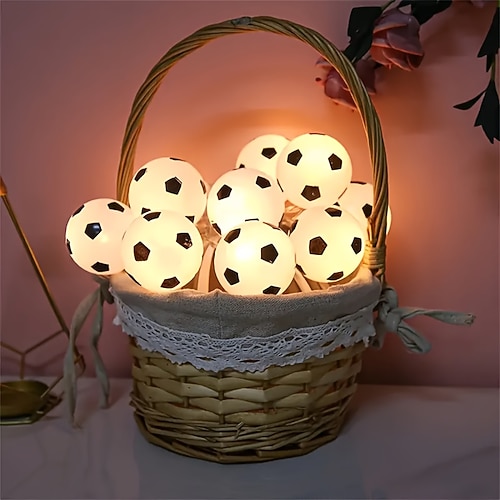 1 stringa di luci a forma di pallone da calcio da 2 m e 10 LED - luci a LED per interni con vano batteria, luce calda, luce bianca e opzioni di luce colorata per soggiorno, camera da letto, feste e