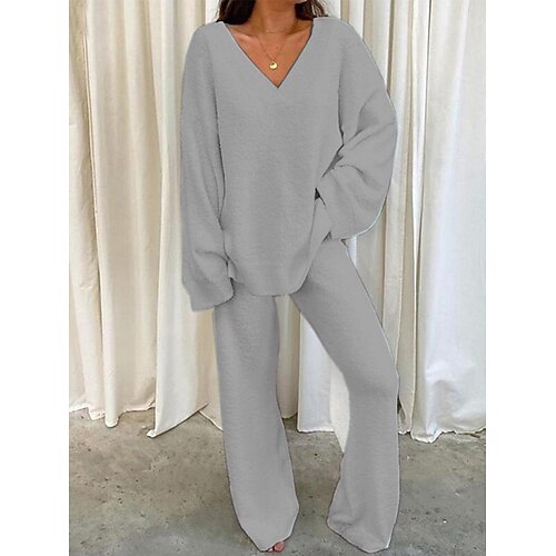 Per donna Moda Streetwear Set di Pantaloni Bolero Top Manica Lunga Scollo a V Tinta unica All'aperto Lavoro Casuale Nero Bianco Rosa Autunno Vestibilità regolare