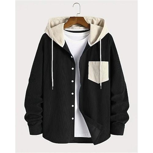 Per uomo Giacca Leggera Giacca in Velluto a Coste Giacca Casual Vacanza Quotidiano Traspirante Tasca Autunno Inverno Blocco di colori Moda Classico Con Cappuccio Regolare Nero Blu Verde militare