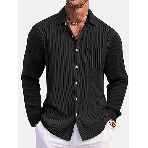 Per uomo Camicia di Velluto a Coste Maglia da golf Lavoro Casuale Bavero Manica Lunga Essenziale Moderno Blocco di colori Bottoni Tasca Frontale Primavera Autunno Vestibilità regolare Nero Bianco