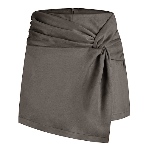Per donna Gonna in finta pelle scamosciata Moda Casual Mini Vita Alta Gonne Semplice Arricciato Micro-elastico Quotidiano Streetwear Cammello Vinaccia Nero Marrone Primavera Pelle scamosciata