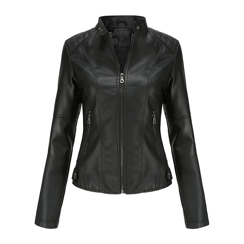 Women's Faux Leather Jacket Biker Jacket Comfortable Pocket Full Zip Fashion Street Style Plain Outdoor Casual Daily Regular Stand Collar Regular Fit Long Sleeve Outerwear Black Red Camel Spring Fall