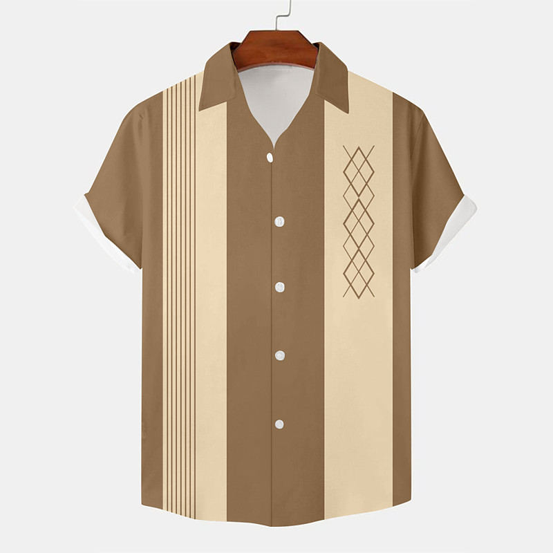 Men's Bowling Shirt Button Up Shirt Printed Shirts Short Sleeve Casual Outdoor Daily Summer Turndown Print Button-Down Black Blue Khaki
