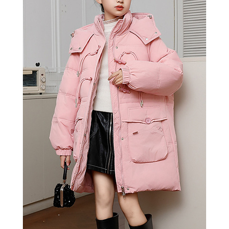 Kids Girls' Down Jacket Outdoor Jacket Puffer Jacket Solid Color Fashion Keep Warm Windproof Outdoor Coat Outerwear 4-12 Years Fall Black Pink Red