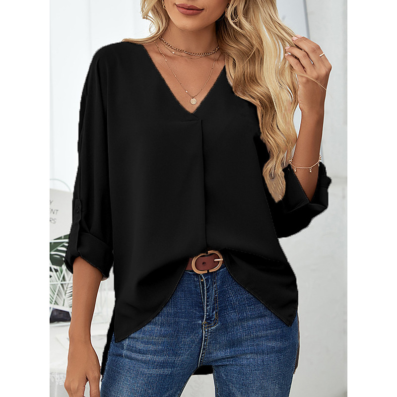 Women's Shirt Dressy Tops Elegant 3/4 Length Sleeve V Neck Ruched Black White Dusty Rose Khaki Spring Summer