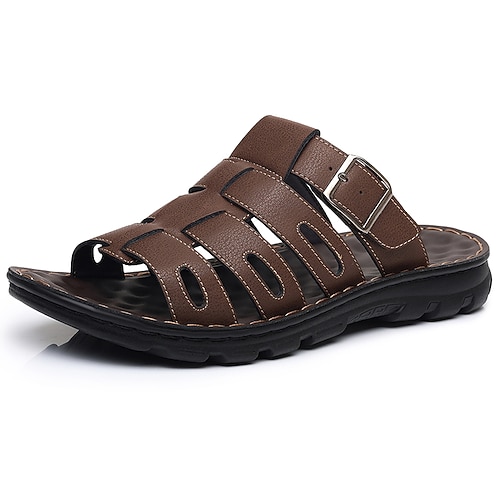 Per uomo Sandali Pantofole e infradito Retrò Footing Informale Giornaliero Da mare Spiaggia Di pelle Comodo Grigio scuro Marrone scuro Estate