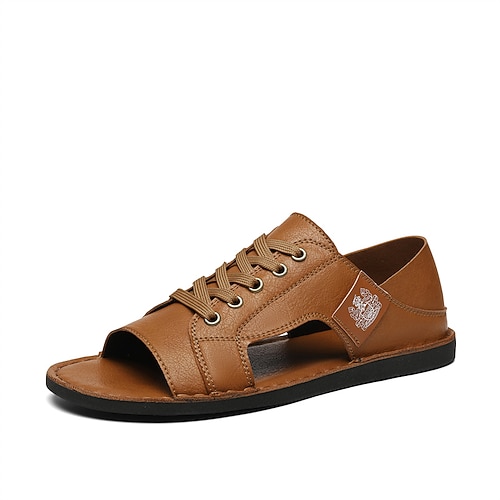 Sandali da uomo in pelle marrone con cinturino regolabile, scarpe estive comode e casual a punta aperta, perfette per il tempo libero all'aperto, le passeggiate in resort e l'uso quotidiano.