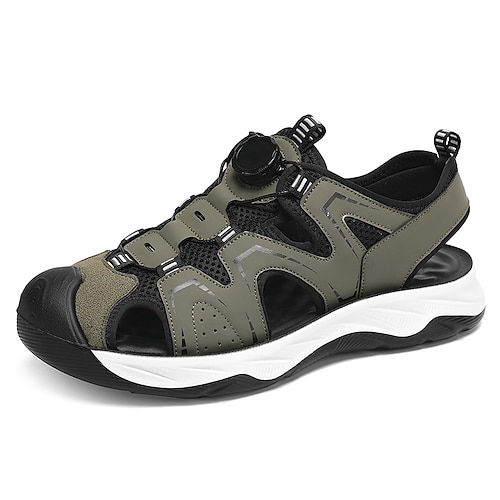 Sandali sportivi da uomo color oliva a punta chiusa, regolabili, traspiranti, leggeri e comodi, ideali per l'estate, perfetti per viaggi su isole e in crociera, vacanze in resort, passeggiate sul ponte e tempo libero in riva al mare.