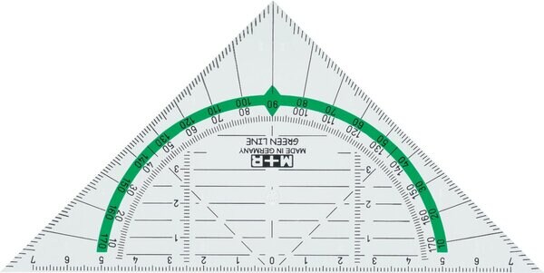 Geodreieck 16 cm Green Line, glasklar, grün hinterlegt