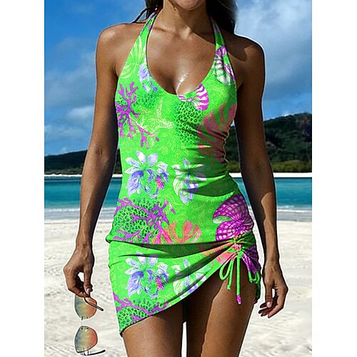 Per donna Costumi da bagno Tankini Gonna Costume da bagno Coulisse Elegante Vacanza Grafico Creature marine Collo a U Senza Maniche Costumi da bagno