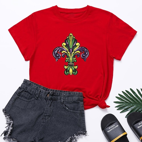 Per donna maglietta Cotone Stampa Carnevale Giornaliero Fine settimana Di tendenza Manica corta Rotonda Vino Primavera estate