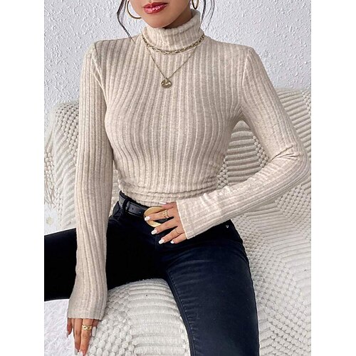 Per donna Felpa Casual Morbido Colore Puro A Coste Dolcevita Lavorato a maglia Manica Lunga Top Regolari Maglia All'aperto Quotidiano Weekend Nero Vino Autunno Inverno