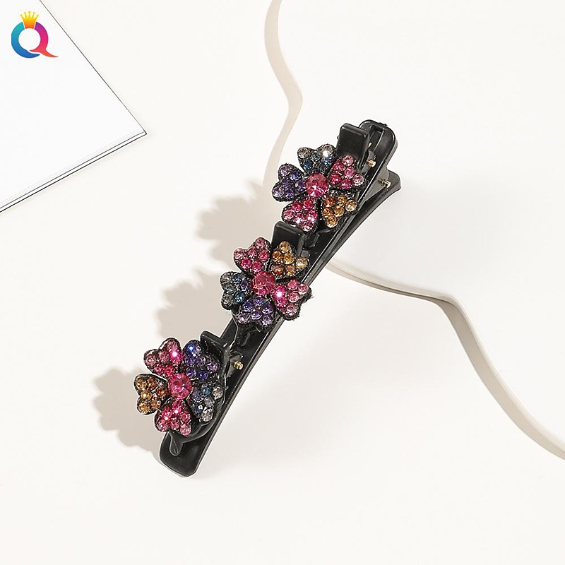 parkling Crystal Stone Braided Hair Clips with 3 Small Clips Pearl shaped hairpin duckbill clipBraided Hair Clip with Rhinestones for Women/Girls