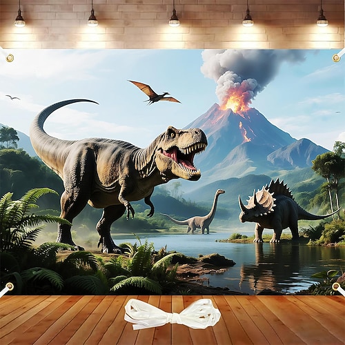 mondo dei dinosauri giurassico t-rex triceratopo vulcano giungla tropicale arazzo da parete decorazione camera da letto per bambini sala giochi ragazzi arazzo da parete festa di compleanno sfondo