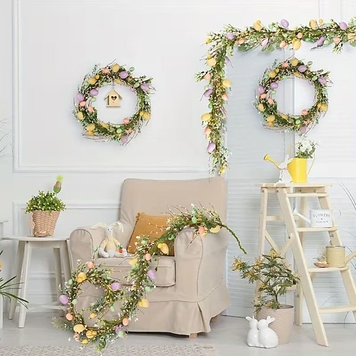1,80 m lange, bunte künstliche Ostereiergirlande, rustikale Frühlingsrankengirlande mit pastellfarbenen Eiern Florale Akzente, perfekt für die Feiertage Tischdekoration, festlicher Kranz,