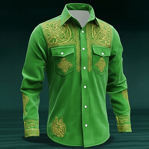 Festa di San Patrizio Per uomo Floreale intricato Arte celtica Camicia Camicia con Bottoni Manica Lunga Vintage Retrò Feste Ferie Primavera Autunno Collo ripiegato Stampa 3D Due tasche anteriori