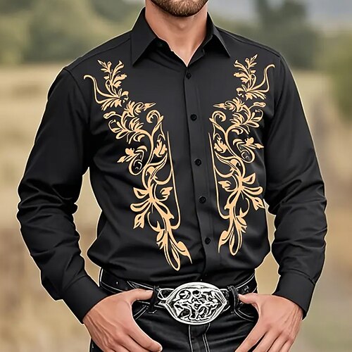 Per uomo Stampa Floreale Etnico Fiori Camicia Camicia Western Camicia da cowboy Manica Lunga Vintage Retrò All'aperto Vacanza Primavera Autunno Collo ripiegato Stampa 3D Camicia tipo lino Nero grigio