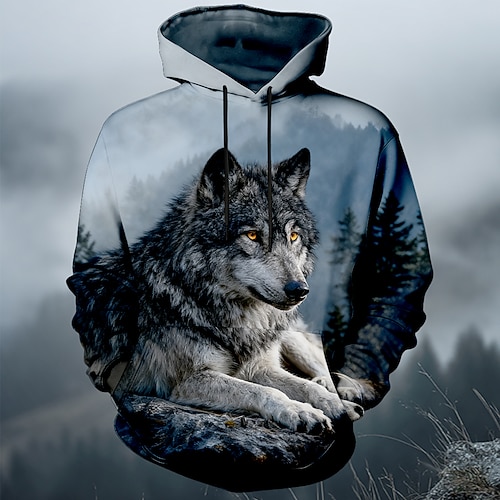Per uomo Lupo Felpa con Cappuccio Felpa 3D Fantasia Manica Lunga Girocollo Regalo Club Abbigliamento casual alla moda Blu 1 Blu 3# Blu 2# Coulisse Autunno Inverno progettista S M L XL XXL XXXL