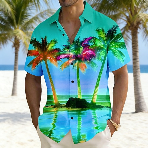 Per uomo Albero di Cocco Paesaggio Piante Tropicali Camicia Camicie hawaiane Camicia Aloha Manica Corta Hawaiano Vacanza Ferie Estate Collo ripiegato Stampa 3D Una tasca anteriore Camicia tipo lino