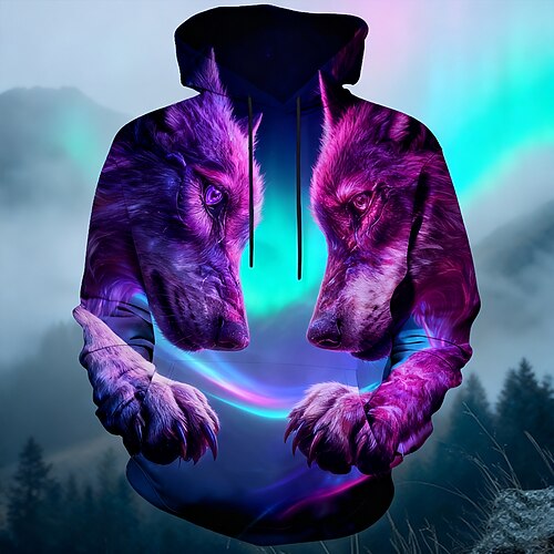 Per uomo Lupo Felpa con Cappuccio Felpa 3D Fantasia Girocollo Abbigliamento casual alla moda Club Regalo Bianco Viola Verde Coulisse Autunno Inverno progettista S M L XL XXL XXXL
