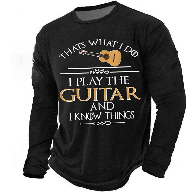 Mens Graphic Long Sleeve T Shirt Thats What I Do I Play The Guitar And I Know Things Vintage Army Green Musician Tee Clothing Apparel S M L XL XXL XXXL