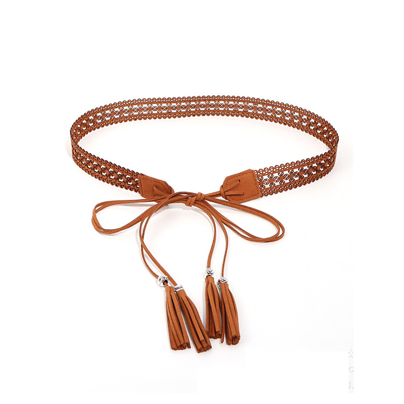 Women's Boho Lace-Up Tassel Belt – Vintage Hollow-Out Faux Suede Waist Belt, Adjustable Wide Cinch Belt for Dresses, Festivals Casual Outfits