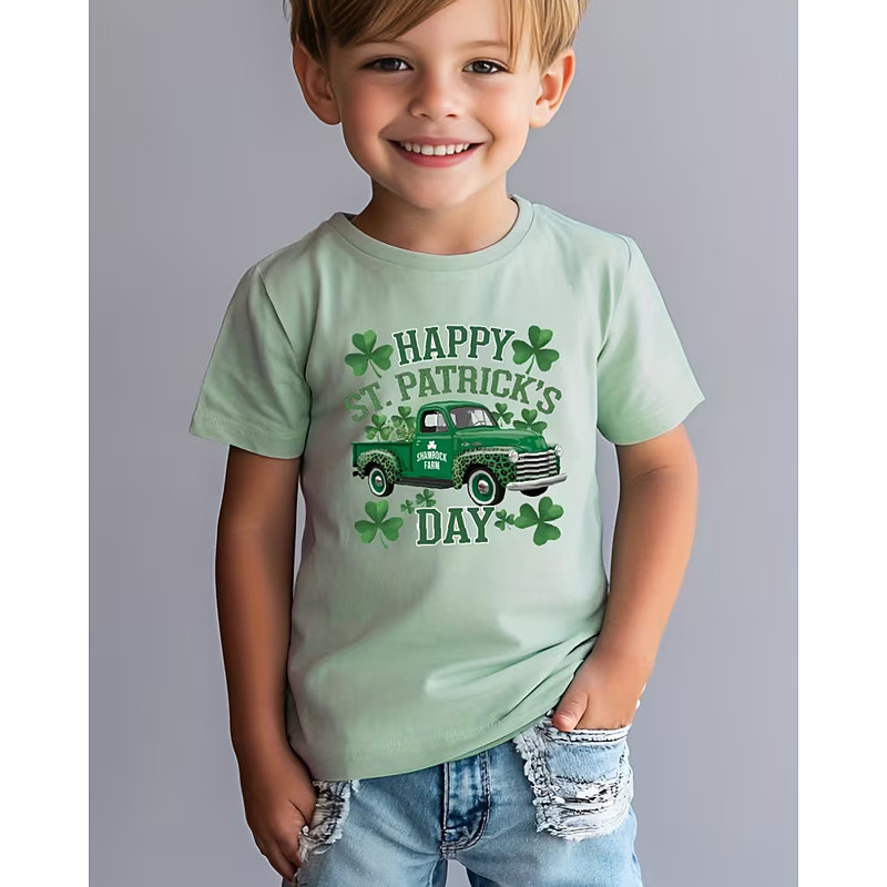 St. Patrick Unisex Boys' 3D Graphic Car Four Leaf Clover T shirt Tee Short Sleeve 3D Print Summer Spring Sports Fashion Streetwear Kids 4-12 Years Crew Neck Casual Daily Outdoor Regular Fit
