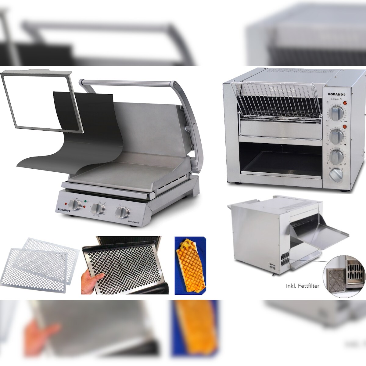 Roband Komplettset Professionelle Burger-Station mit Grill inkl. Zubehör und Eclipse Bun Toaster GSA815S-ET315-FK