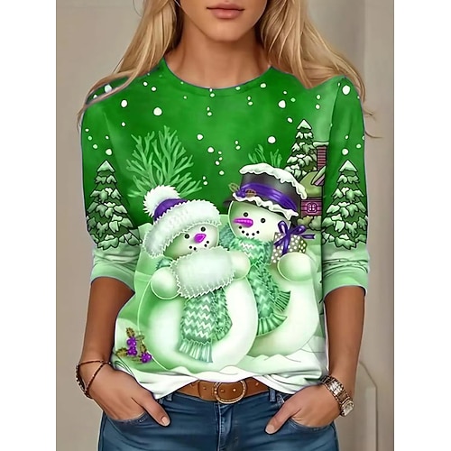 T-shirt donna Natale stampa grafica moda vintage elegante maniche lunghe collo a giro regolari top quotidiani weekend stampa bianca rossa blu primavera autunno inverno