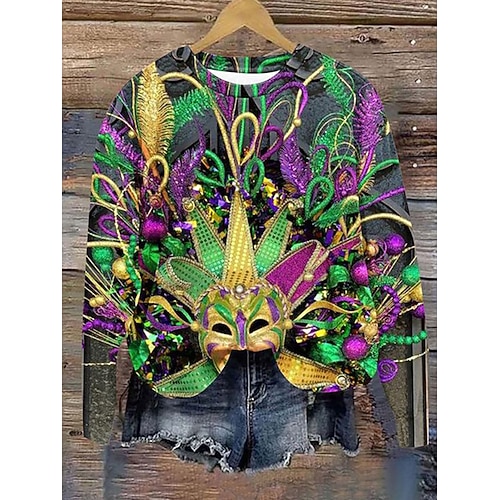 Felpa Pullover da Donna Carnival Maglietta Grafica Casual Maniche Lunghe Collo Giro Regular Tops Moda Quotidiana Nera Viola Verde Autunno Inverno