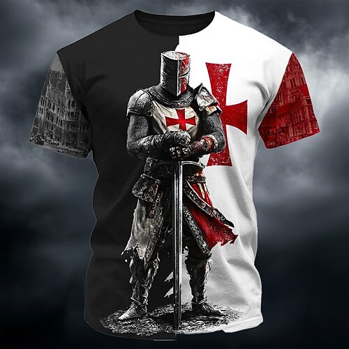 Maglietta T-Shirt Uomo Crociati Cavalieri Templari Guerriero Medievale Maglietta Stampa Completa Croce Rossa Mancante Bianca Grafica Maniche Corte Collo A Giro Retro Top Abbigliamento Designer