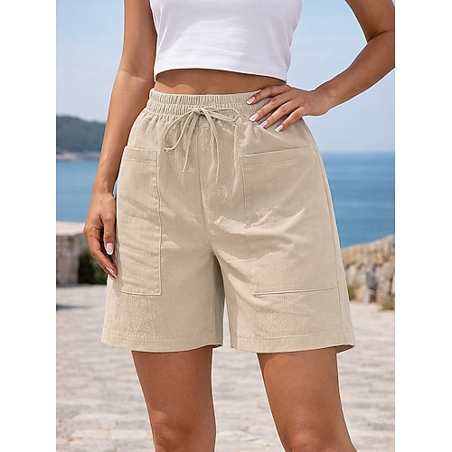 Damen Normal Caprihose Kunstbaumwollleinen Shorts Sommershorts Lässig / Sportlich Kurz Mittlere Taillenlinie Einfarbig Patchwork Tasche Schnelltrocknend Atmungsaktivität Weich Mikroelastisch Outdoor