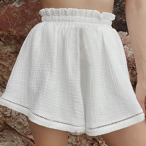 Damen Shorts Sommershorts Strandshorts Baumwollshorts Urlaub Mode Basic Kurz Hohe Taille Einfarbig Einfach Patchwork Weites Bein Elastischer Bund Komfort Weich Atmungsaktiv Mikroelastisch Streetwear