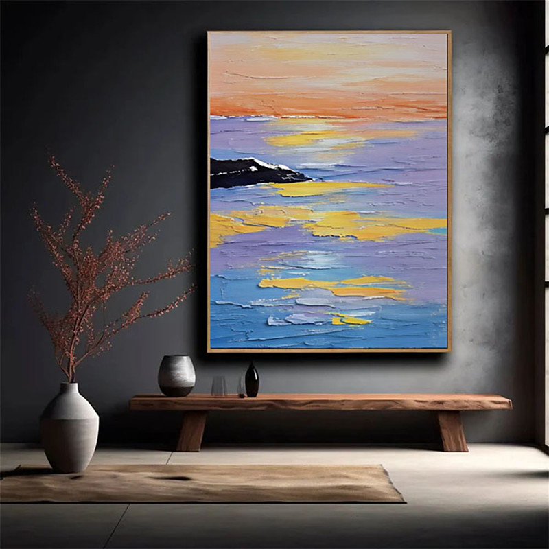 Large oil painting hand painted Abstract Colorful Sea Sunset Oil Painting on Canvas Custom Sunrise Living Room Home Decor Textured Sea Wall Art