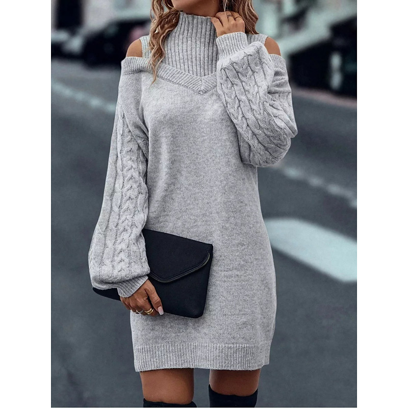 Women's Sweater Sweater Dress Casual Soft Pure Color Ribbed Turtleneck Knitted Long Sleeve Long Tops Knit Outdoor Daily Weekend Black Green Fall Winter