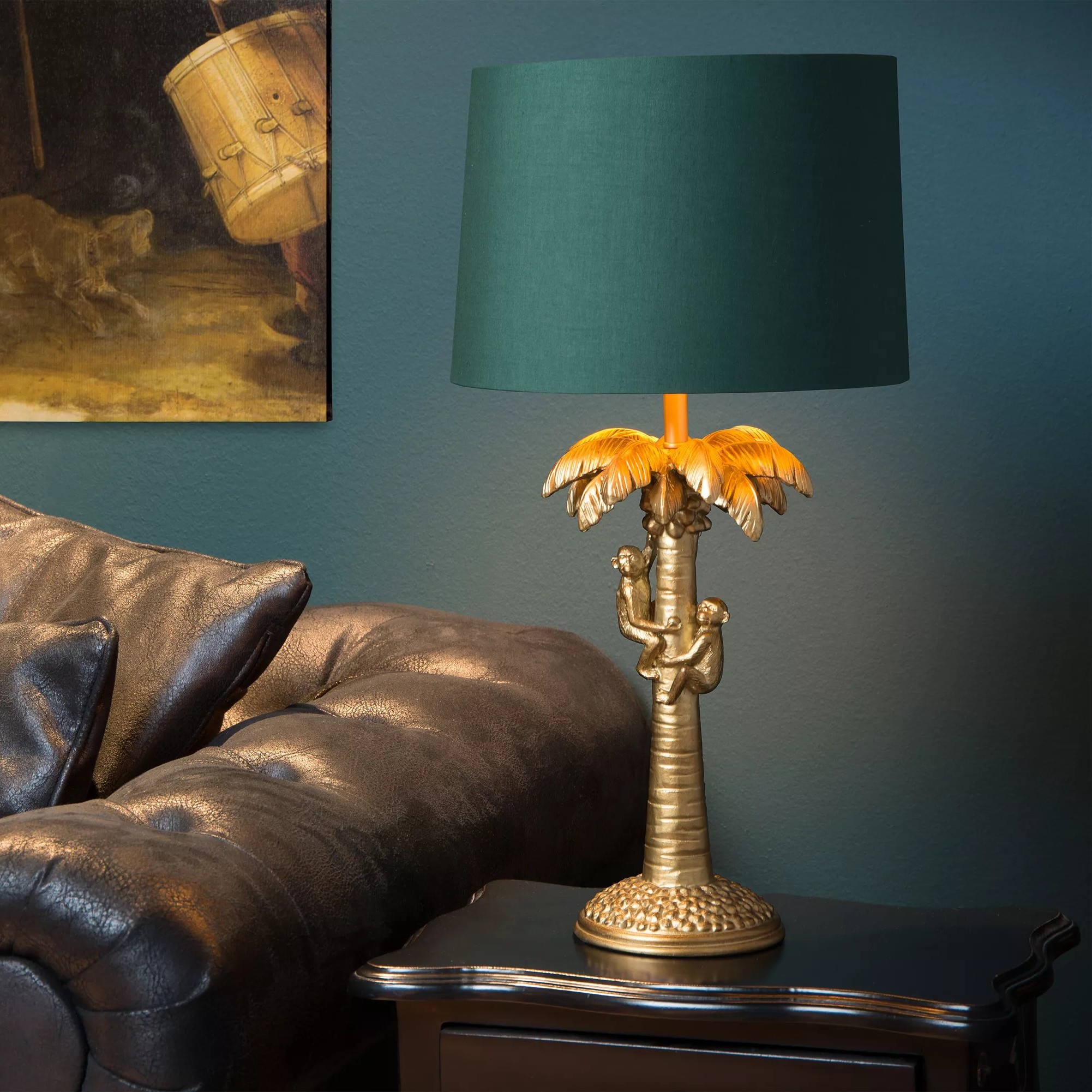 Lucide Extravaganza Coconut - tafellamp - Ø 30,5 x 50 cm - mat goud en groen