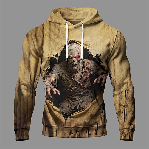Halloween Herren Monster Kapuzensweatshirt Mode Täglich Lässig Langarm Mit Kapuze Urlaub Party Streetwear Festival Khaki Kordelzug Drucken Herbst Winter Designer S M L XL 2XL 3XL