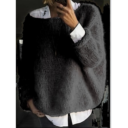 Per donna Felpa Informale Morbido Colore puro Cavi Girocollo Lavorato a maglia Manica lunga Top regolari Maglia Esterno Giornaliero Fine settimana Nero Bianco Autunno Inverno