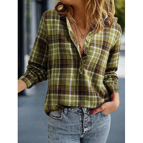 Per donna Blusa Grafico Plaid Elegante Vintage Essenziale Manica Lunga Colletto a Camicia Top Regolari Quotidiano Lavoro Blu Nero Bianco Giallo Rosso Estate Primavera Autunno Inverno