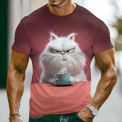 Herren Tiermotiv Katze Lustig T Shirt Kurzarm T-Shirt 3D-Druck Rundhalsausschnitt Hemd Übertrieben Designer Party Ferien Blau Wasserblau Rote Sommer Frühling Bekleidung S M L XL XXL XXXL
