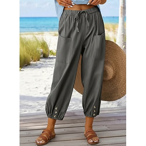 pantaloni capri da donna 100% cotone pantaloni estivi casual comodi tinta unita tasca elastico vita pantaloni vacanza casa tutti i giorni nero bianco verde militare blu navy blu estate primavera autunno