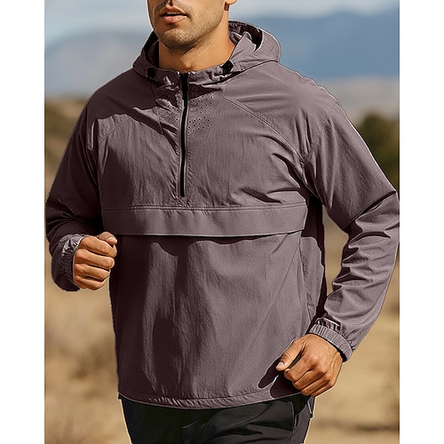 Per uomo Tinta unita Giaccia da corsa Giacca da esterno Giacca con cappuccio Estate Coulisse Tasca Zip a un quarto Manica Lunga Athleisure Protezione Solare Antivento Traspirante Pesca Escursionismo