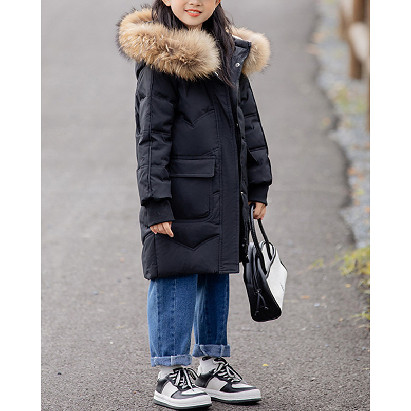Kids Girls' Down Jacket Puffer Jacket Solid Color Sports Pocket Keep Warm Windproof Outdoor Coat Outerwear 4-12 Years Winter Black White Pink