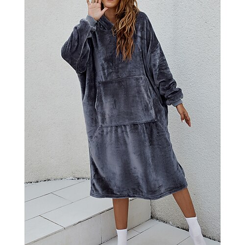 Per donna Pigiama Abbigliamento da Casa Casual Felpa con cappuccio indossabile Colore Puro Tasca Vacanza Casa Quotidiano Manica Lunga Felpa con Cappuccio Nero Rosa Rosso Grigio scuro Autunno Inverno