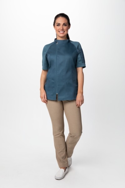 Chef Works® Damenkochjacke VARKALA Flex Serie nachhaltig, Reisverschluss, Blau, Größe XL