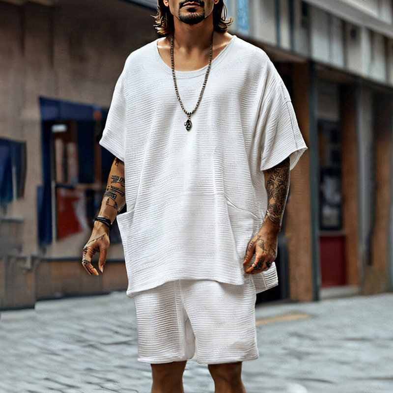 Men's T-shirt Suits 2 Pieces Outfits Tee Shorts Short Sleeve Crew Neck Summer Plain Fashion Casual 2 Piece Vacation Daily Wear Going out Black White Top Tee for Men